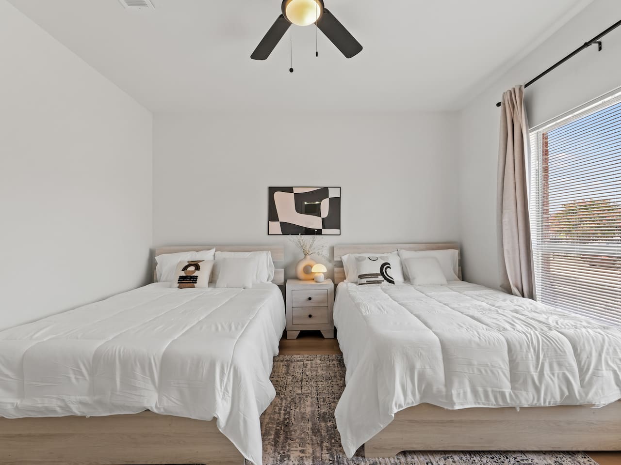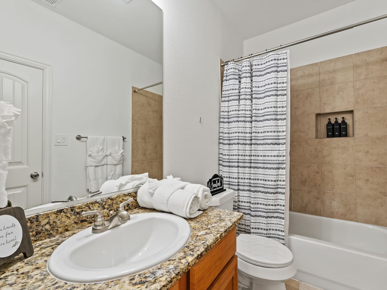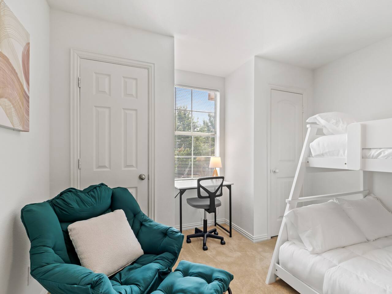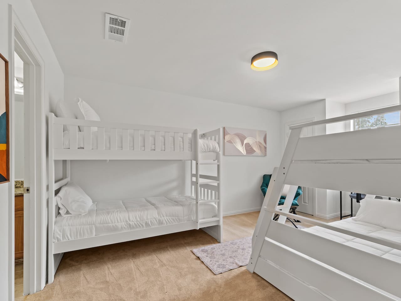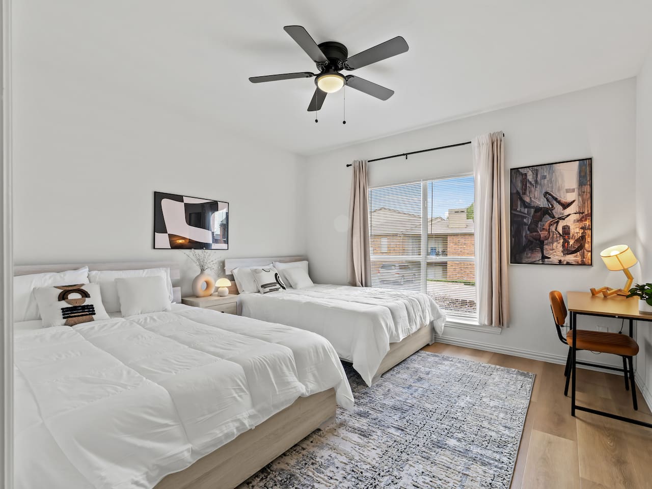 **Welcome to Your Grand Prairie Haven!** ⭐ Professionally cleaned and managed, this spacious home sleeps **11 guests** and offers easy access to Arlington, Grand Prairie, and DFW attractions. 🚗 **Just 10 mins** to Arlington’s Entertainment District – Catch the action at AT&T Stadium, Globe Life Field, and Texas Live! without the hassle of long drives. 🎢 **Minutes from EpicCentral** – Enjoy Grand Prairie’s hotspot for dining, entertainment, and family fun. ✈️ **Only 15 mins to DFW International Airport** – Smooth arrivals and departures for all your travel needs. 🛣️ **Quick access to major highways** – Reach Downtown Dallas or Downtown Fort Worth in just 20 minutes. 🏡 **Peaceful neighborhood setting** – Quiet, comfortable, and secure just minutes from major attractions. --- **The Space 🏡** **3 Bedrooms • 2.5 Bathrooms • Sleeps up to 11 guests** 1️⃣ **Sleeping Arrangements:** – **Bedroom 1 (Upstairs):** King bed with 55" Smart TV – **Bedroom 2 – Master (Bottom Floor):** 2 Queen beds with attached full bathroom – **Bedroom 3 (Upstairs):** 1 Twin-over-Full bunk + 1 Twin-over-Twin bunk – **Living Room:** One large sectional sofa (seats 5 comfortably) 2️⃣ **Bathrooms 🚿** – Full bathroom downstairs (attached to Master) – Half bathroom downstairs – Shared full bathroom upstairs – Spa-grade toiletries & fresh towels 3️⃣ **Living Room 🛋** – One large sectional sofa – 65" Smart TV (downstairs) – Board games for family fun 4️⃣ **Fully Stocked Kitchen 🍽** – Electric stove & oven – Refrigerator – Air fryer, Crockpot, Waffle maker, Toaster – Coffee maker + Electric kettle – Glassware, bakeware, cookware, utensils 5️⃣ **Coffee Bar ☕** – Electric kettle, coffee, tea, sugar, and creamer 6️⃣ **Dining Area 🍽** – 6-person dining table with backyard view 7️⃣ **Workstations 💻** – 3 desks – one in each bedroom 8️⃣ **Parking 🚗** – Room for 2 vehicles in the driveway and 1 in the garage 9️⃣ **Safety & Security 🔐** – Smart lock with video doorbell – 1 outdoor cameras with floodlights – Smoke & carbon monoxide detectors – Fire extinguisher + First Aid kit 🔟 **Guest Access 🔓** – Private access code for self-check-in – Full access to the house except the owner’s closet 1️⃣1️⃣ House Rules 📝 🚭 No smoking 🐶 Pet Friendly (up to 2 pets, $110 fee, must notify host) 🎉 No events, parties, or large gatherings ⚠️ Guests assume responsibility for any injuries from bunk beds or other parts of the property ⛔ No street parking or blocking the driveway; max 3 vehicles in designated areas