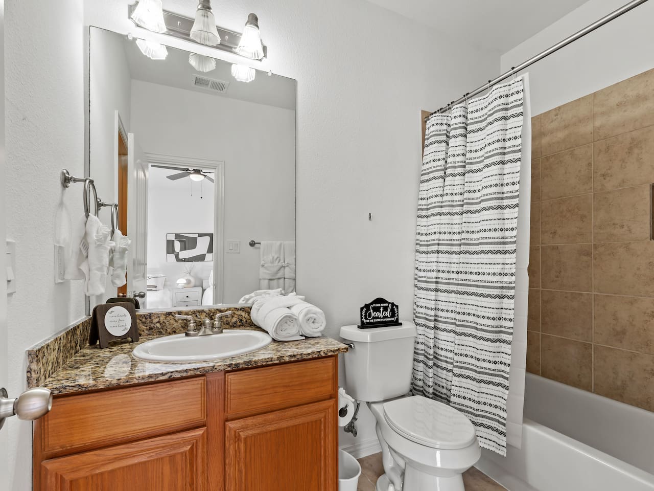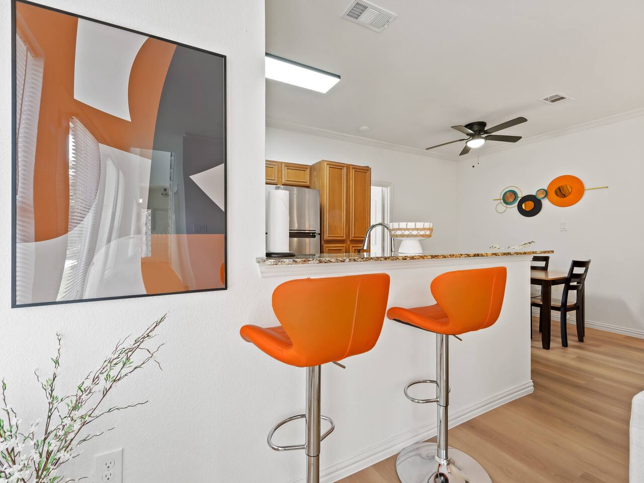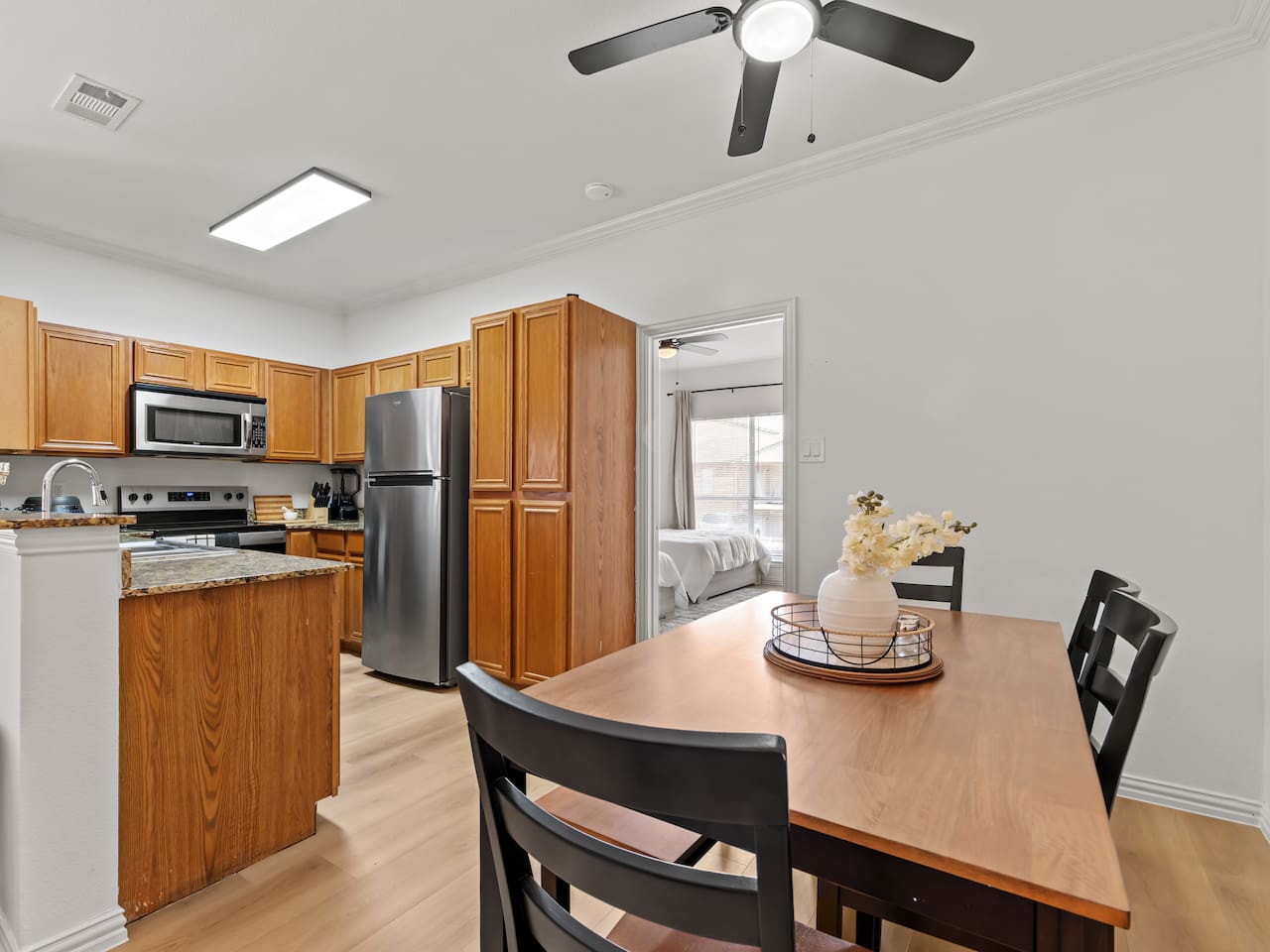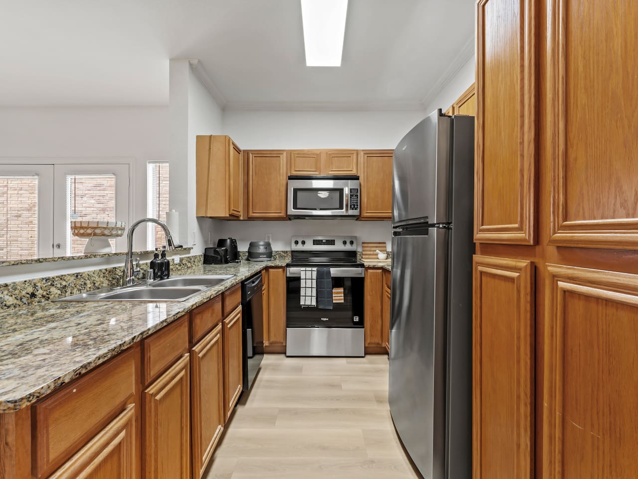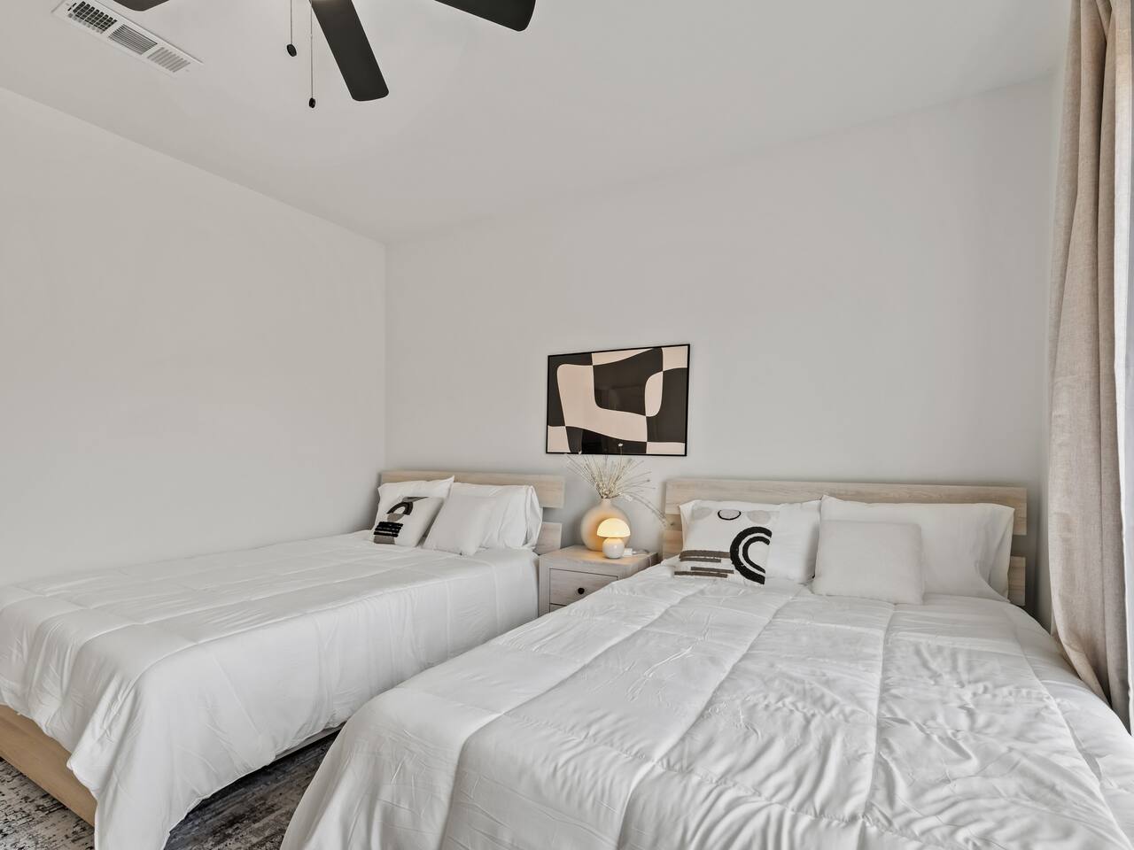 **Welcome to Your Grand Prairie Haven!** ⭐ Professionally cleaned and managed, this spacious home sleeps **11 guests** and offers easy access to Arlington, Grand Prairie, and DFW attractions. 🚗 **Just 10 mins** to Arlington’s Entertainment District – Catch the action at AT&T Stadium, Globe Life Field, and Texas Live! without the hassle of long drives. 🎢 **Minutes from EpicCentral** – Enjoy Grand Prairie’s hotspot for dining, entertainment, and family fun. ✈️ **Only 15 mins to DFW International Airport** – Smooth arrivals and departures for all your travel needs. 🛣️ **Quick access to major highways** – Reach Downtown Dallas or Downtown Fort Worth in just 20 minutes. 🏡 **Peaceful neighborhood setting** – Quiet, comfortable, and secure just minutes from major attractions. --- **The Space 🏡** **3 Bedrooms • 2.5 Bathrooms • Sleeps up to 11 guests** 1️⃣ **Sleeping Arrangements:** – **Bedroom 1 (Upstairs):** King bed with 55" Smart TV – **Bedroom 2 – Master (Bottom Floor):** 2 Queen beds with attached full bathroom – **Bedroom 3 (Upstairs):** 1 Twin-over-Full bunk + 1 Twin-over-Twin bunk – **Living Room:** One large sectional sofa (seats 5 comfortably) 2️⃣ **Bathrooms 🚿** – Full bathroom downstairs (attached to Master) – Half bathroom downstairs – Shared full bathroom upstairs – Spa-grade toiletries & fresh towels 3️⃣ **Living Room 🛋** – One large sectional sofa – 65" Smart TV (downstairs) – Board games for family fun 4️⃣ **Fully Stocked Kitchen 🍽** – Electric stove & oven – Refrigerator – Air fryer, Crockpot, Waffle maker, Toaster – Coffee maker + Electric kettle – Glassware, bakeware, cookware, utensils 5️⃣ **Coffee Bar ☕** – Electric kettle, coffee, tea, sugar, and creamer 6️⃣ **Dining Area 🍽** – 6-person dining table with backyard view 7️⃣ **Workstations 💻** – 3 desks – one in each bedroom 8️⃣ **Parking 🚗** – Room for 2 vehicles in the driveway and 1 in the garage 9️⃣ **Safety & Security 🔐** – Smart lock with video doorbell – 1 outdoor cameras with floodlights – Smoke & carbon monoxide detectors – Fire extinguisher + First Aid kit 🔟 **Guest Access 🔓** – Private access code for self-check-in – Full access to the house except the owner’s closet 1️⃣1️⃣ House Rules 📝 🚭 No smoking 🐶 Pet Friendly (up to 2 pets, $110 fee, must notify host) 🎉 No events, parties, or large gatherings ⚠️ Guests assume responsibility for any injuries from bunk beds or other parts of the property ⛔ No street parking or blocking the driveway; max 3 vehicles in designated areas
